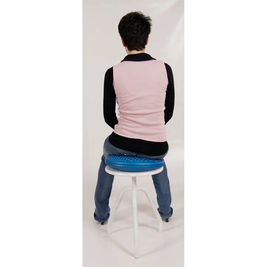 Tasapainotyyny Disco Sit   Istuintyyny harjoitteluun tai vaihtoehdoksi istuinpallolle. Tasapainotyynyn epävakauttava vaikutus lisää selän liikkuvuutta ja lihakset vahvistuvat. Tyynyn nystyrät vilkastuttavat verenkiertoa istuessa. Tasapainotyynyä voi käyttää tasapainoharjoitusten lisäksi psykomotorisiin harjoituksiin sekä koordinaatio- ja reaktioharjoituksiin. Voidaan käyttää myös vedessä.   Väri: sininen/punainen Halkaisija: Junior 32cm/ Senior 39 cm