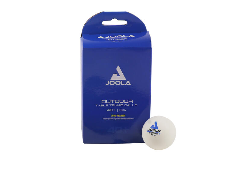 Pallo painaa 20% enemmän kuin tavallinen pöytätennispallo ja siksi sitä voidaan käyttää tuulisissa olosuhteissa. Joola Outdoor -pöytätennispallot on erityisesti suunniteltu ulkokäyttöön ja ne kestävät kylmää, kuumuutta, UV-säteilyä ja kosteutta.