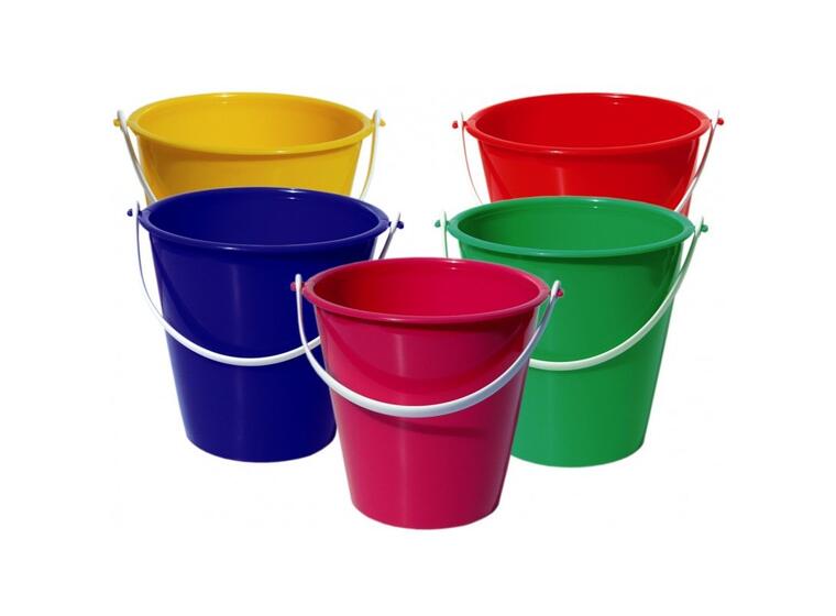 Hiekka- ja vesileikkeihin sopiva ämpäri on valmistettu kestävästä muovista.
