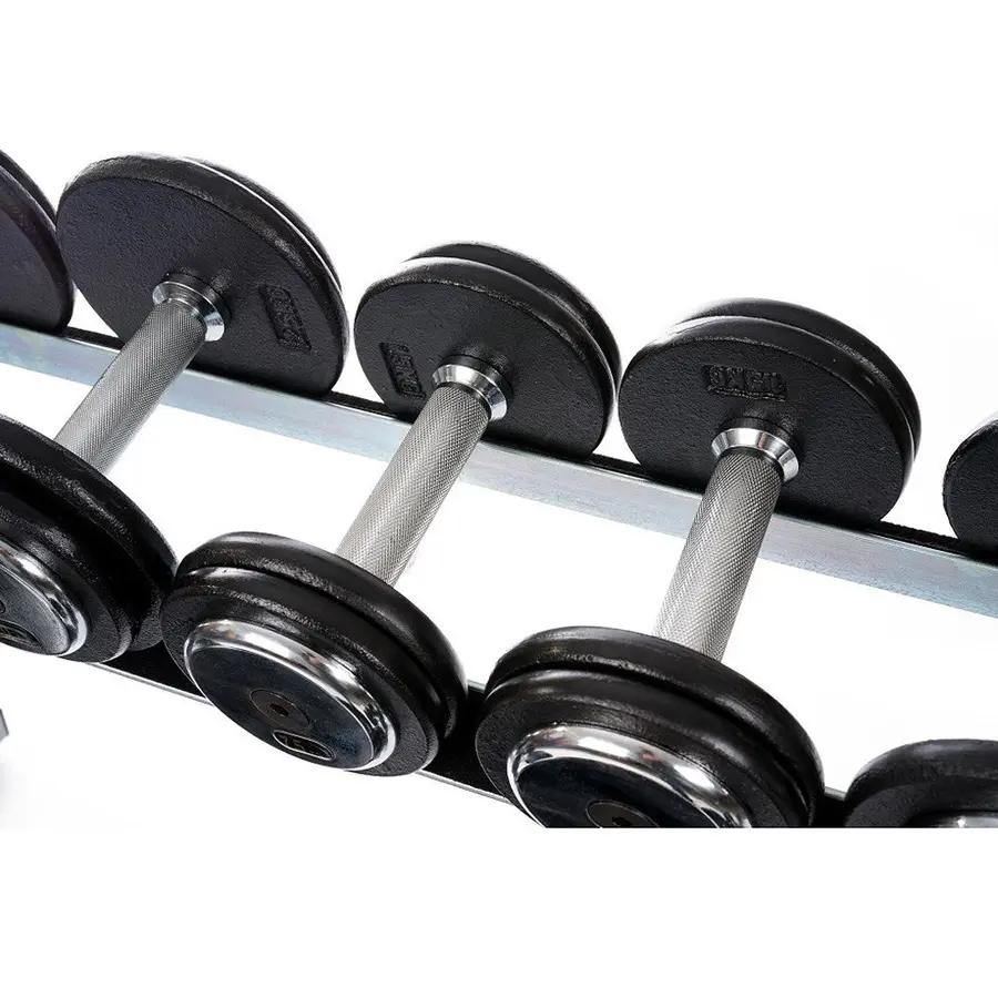 Kaksitasoinen käsipainoteline Käytännöllinen ja vakaa käsipainoteline kahdella hieman kaltevalla tasolla. Tukeva teräsrakenne. Mitat: 150 x 65 x 73 cm