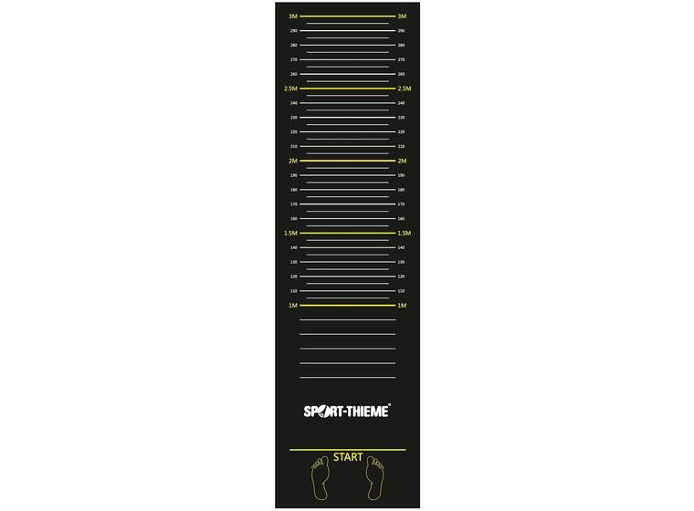 Sport-Thieme Pituushyppymatto pituushyppyyn ja koordinaatiosarjoihin. Monikäyttöinen sisätiloihin suunniteltu harjoitusalusta, joka on valmistettu liukumattomasta PVC-materiaalista. Maton yläpinnassa on yhdeksän kenttää ja merkintäpisteitä heittopeliä varten. Alapuolella on mitoitusmerkkejä pituushyppyjen mittaamiseen 5 cm välein sekä jalanmuotoinen hyppypaikka. Harjoituksen jälkeen voit helposti rullata maton kokoon ja säilyttää sen tilaa säästävästi.