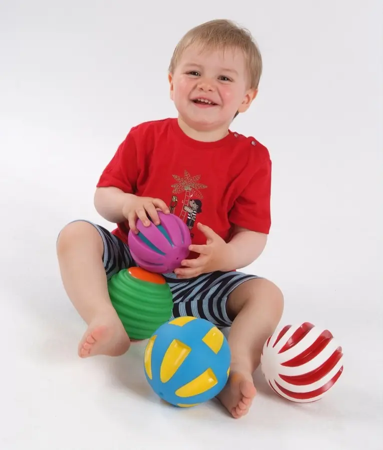 SportFit Pallosetti, jossa on värikkäitä palloja, ja niitä puristaessa ne päästävät hauskan äänen, mikä voi auttaa lapsia edistämään aistien kehitystä.