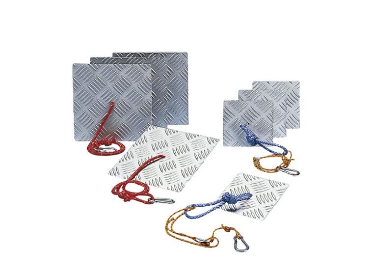 • 4 metallilevyä 195 x 195 mm, mukana liitosköydet ja kiinnityskoukut kiristysköysien ankkurointiin